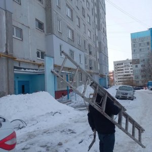 Проведены работы по очистке козырьков над входами в подъезды по следующим адресам: Майская 7, Майская 9, Вильямса 26, Бондаренко 29, Гармонная 26