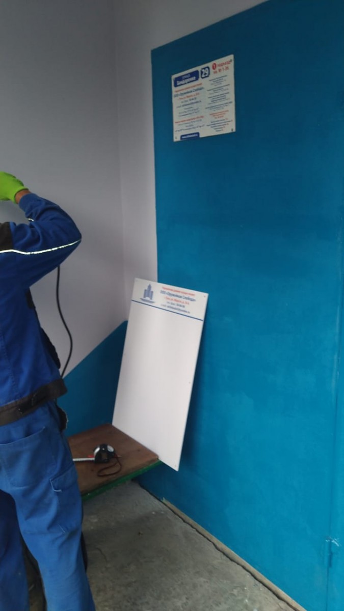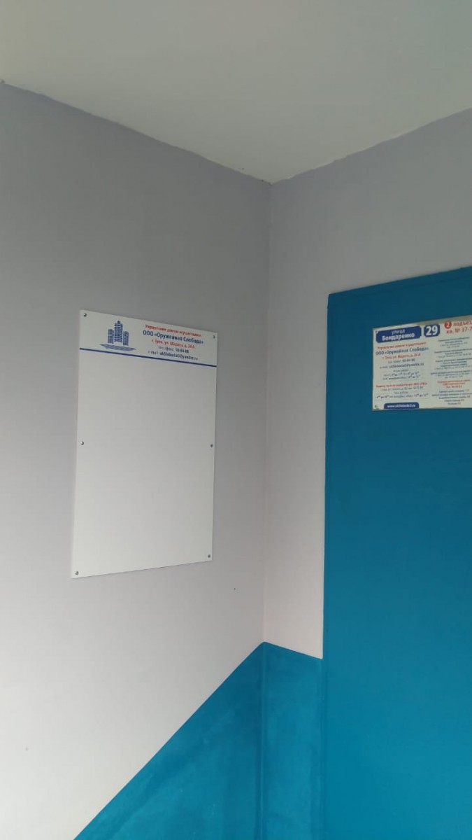 Установка новых информационных щитов Бондаренко 29, 7 подъездов