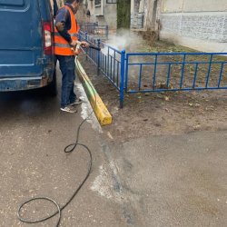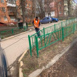 Калинина 22 к.2 мойка штакетника и бардюрного камня